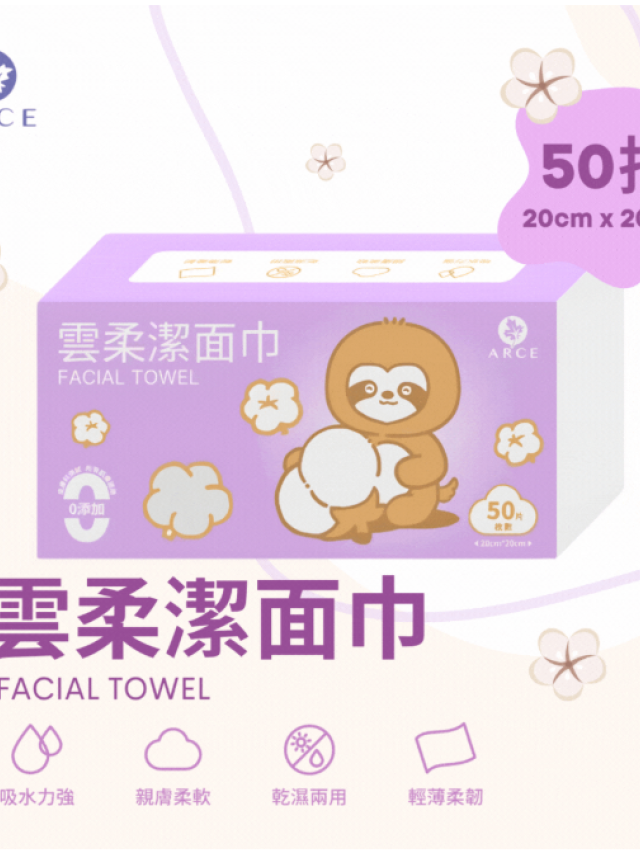 ARCE - 雲柔潔面巾-50抽 (20cmx20cm) |洗面巾| 一次性洗面巾|潔面巾|洗面|洗臉巾|潔面|即棄洗面巾|毛巾|即棄毛巾|棉柔巾|一次性|化妝棉|紙巾